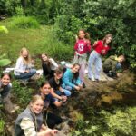 Wir haben zusammen mit Ines Schauer ein Igelprojekt gemacht, bei dem man zählt, wie viele Igel es noch gibt. Für das gibt es einen speziellen dreieckigen Tunnel, bei dem auf beiden Seiten vom Anfang des Tunnels ein Blatt reingelegt wird und mit Büroklammern festgesteckt wird. In der Mitte ist eine Schale mit Futter und neben der Schale mit Futter ist eine Farbe aufgemalt, die aus Kohle und Öl besteht. Wenn der Igel dann in den Tunnel läuft und zum Futter will, tritt er in die Farbe hinein und dann, wenn er wieder raus läuft, läuft er übers Blatt und hinterlässt Spuren. In unserem Schulgarten haben wir auch einen Teich mit einer Brücke, die man leider nicht betreten kann, weil sie sehr morsch ist. In dem Teich gibt es viele Algen und auch Seerosen. Wir haben Molche und ganz viele Kaulquappen. Letzte Woche, als wir im Schulgarten waren, hatte es schon ganz viele kleine Frösche. Wir haben sie uns in der Becher Lupe angeschaut und sie sind richtig süss.